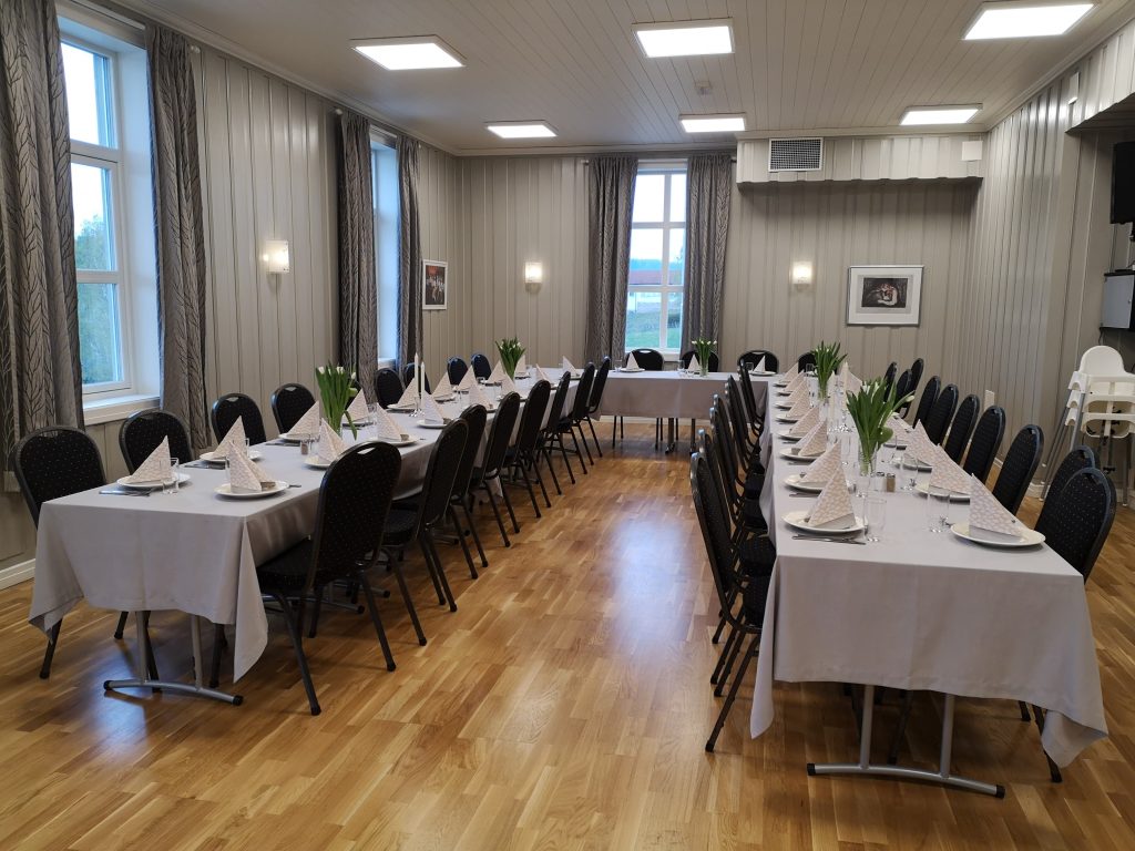 Lillesalen er på 70m2, kan dekkes til 40 personer og kan leies til alle anledninger via link: https://ignarbakke.com/utleie/