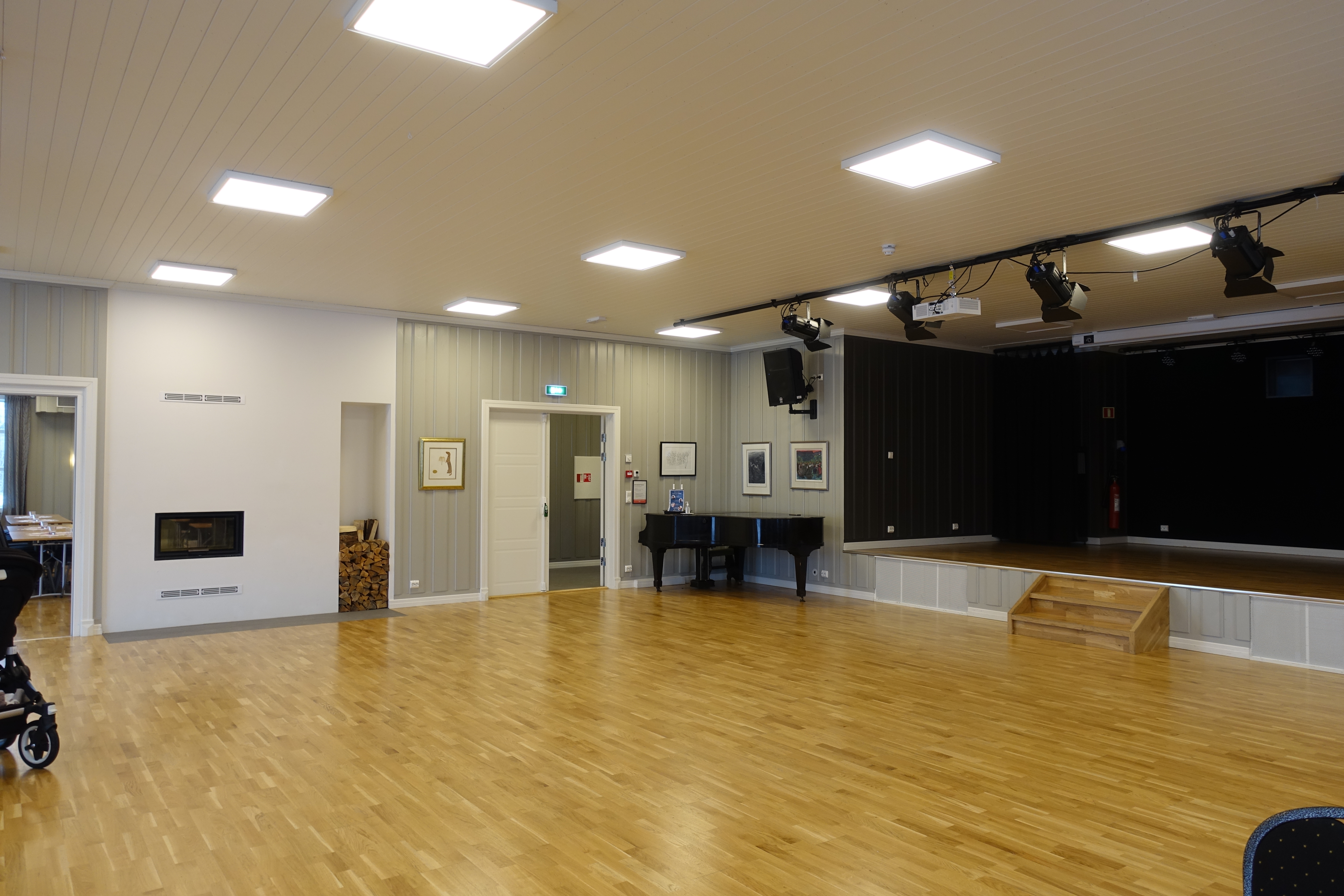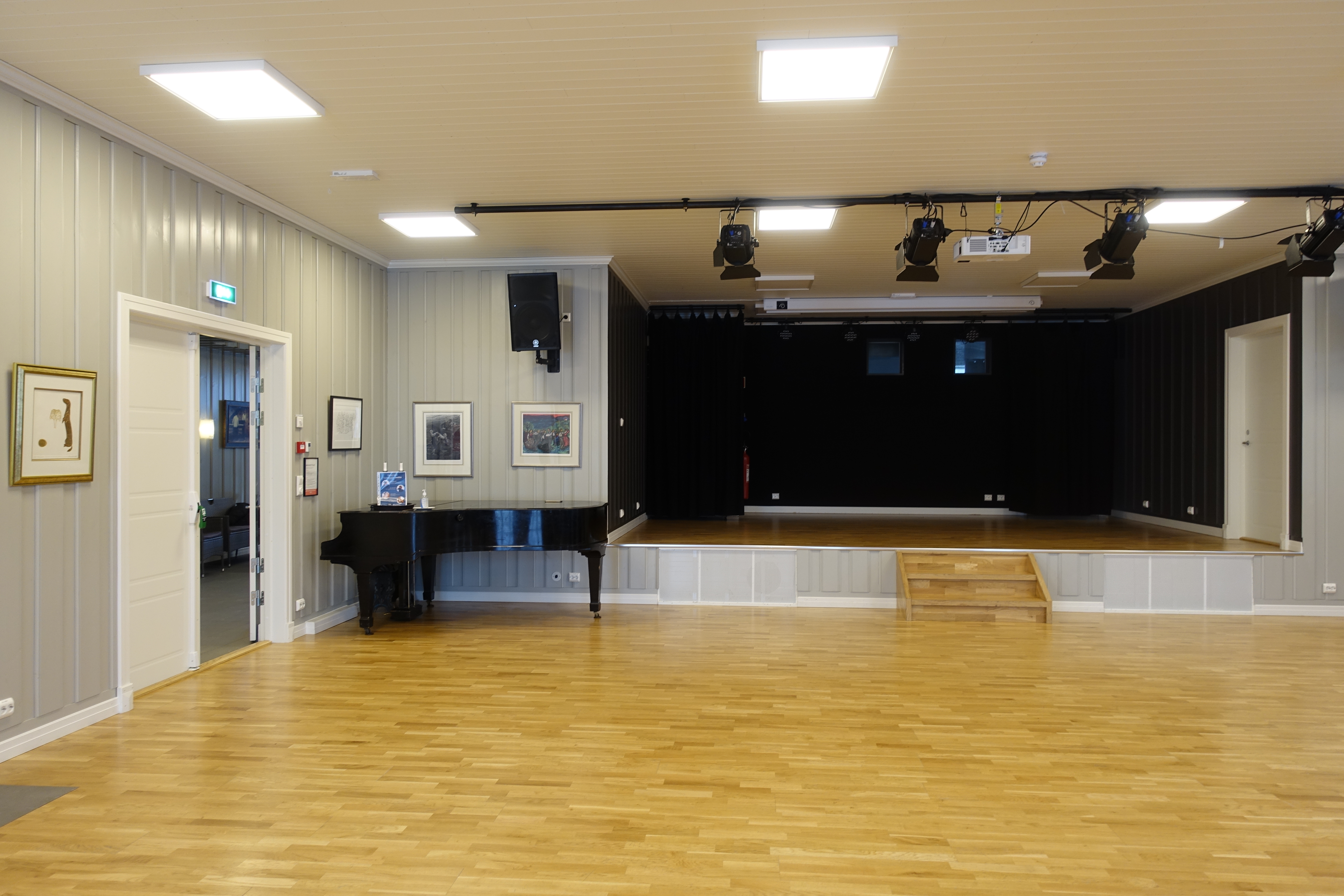 Storsalen er 126m2 og kan dekkes til 120 personer sittende. I tillegg inkluderer storsalen scene på 27m2 og backstage på 16 m2 Lokalet har moderne lyd og projector og kan inkluderes ved leie av storsalen.
